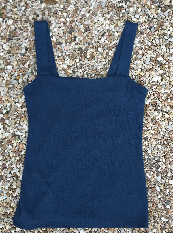 Square neck tank in a stable sweater knit with just the right amount of stretch. Perfect for layering or wearing alone, all year long.